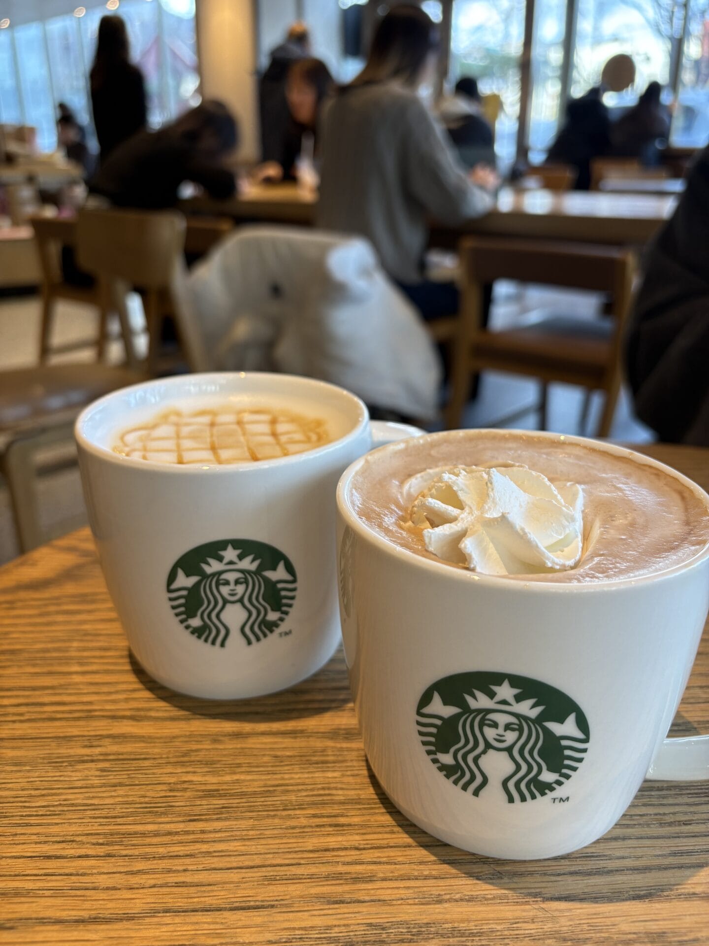 約3時間程チマチョゴリを楽しんだ後は近くのスタバでゆっくりしました!私が行った日の気温は6℃で体が冷えてしまったので暖かい飲み物を頼みました☕️韓国のスタバは日本よりも広く席も多いと感じました!勉強をしている学生やお仕事をしている方も多かった為店内は基本静かでした😌