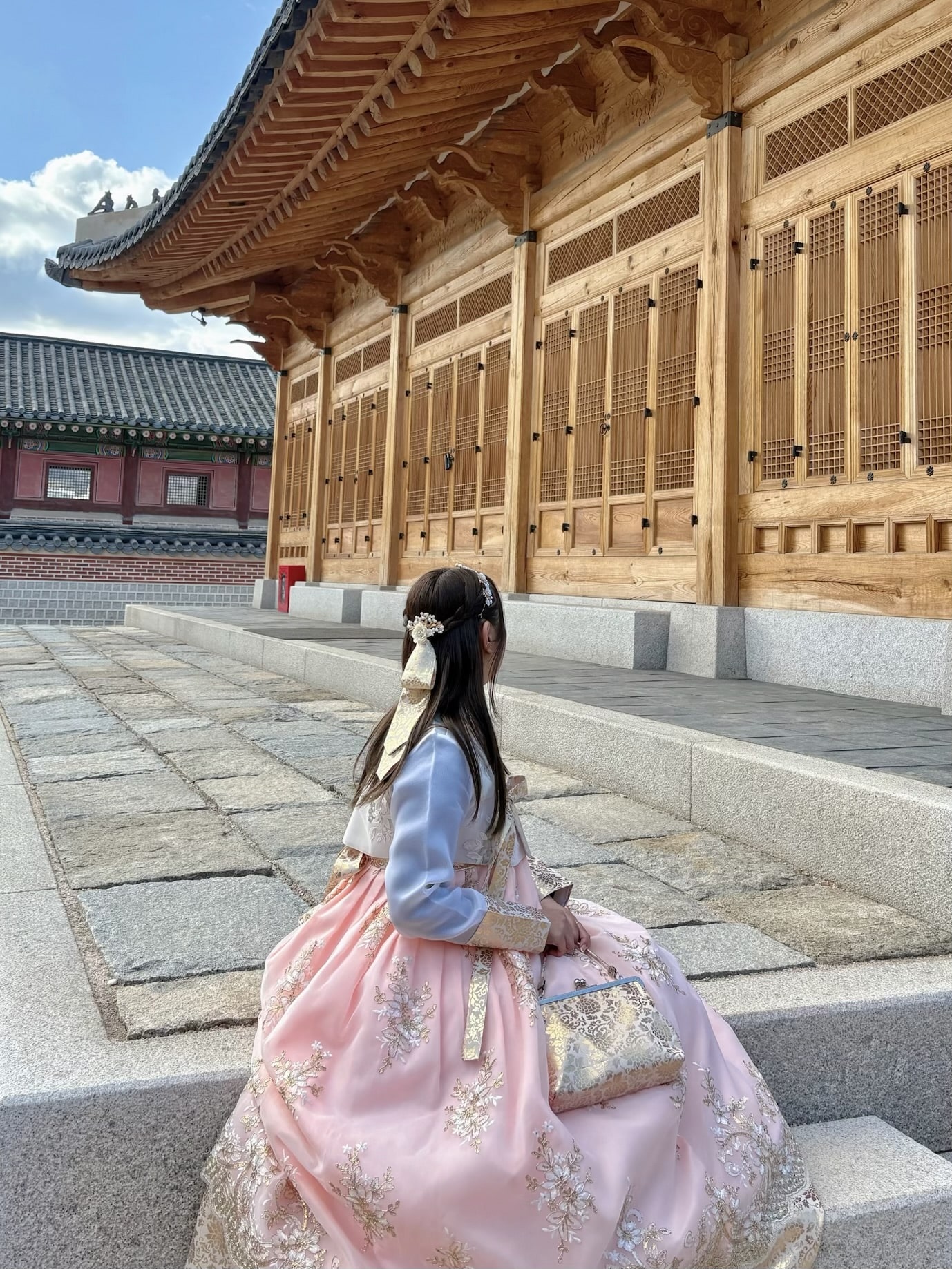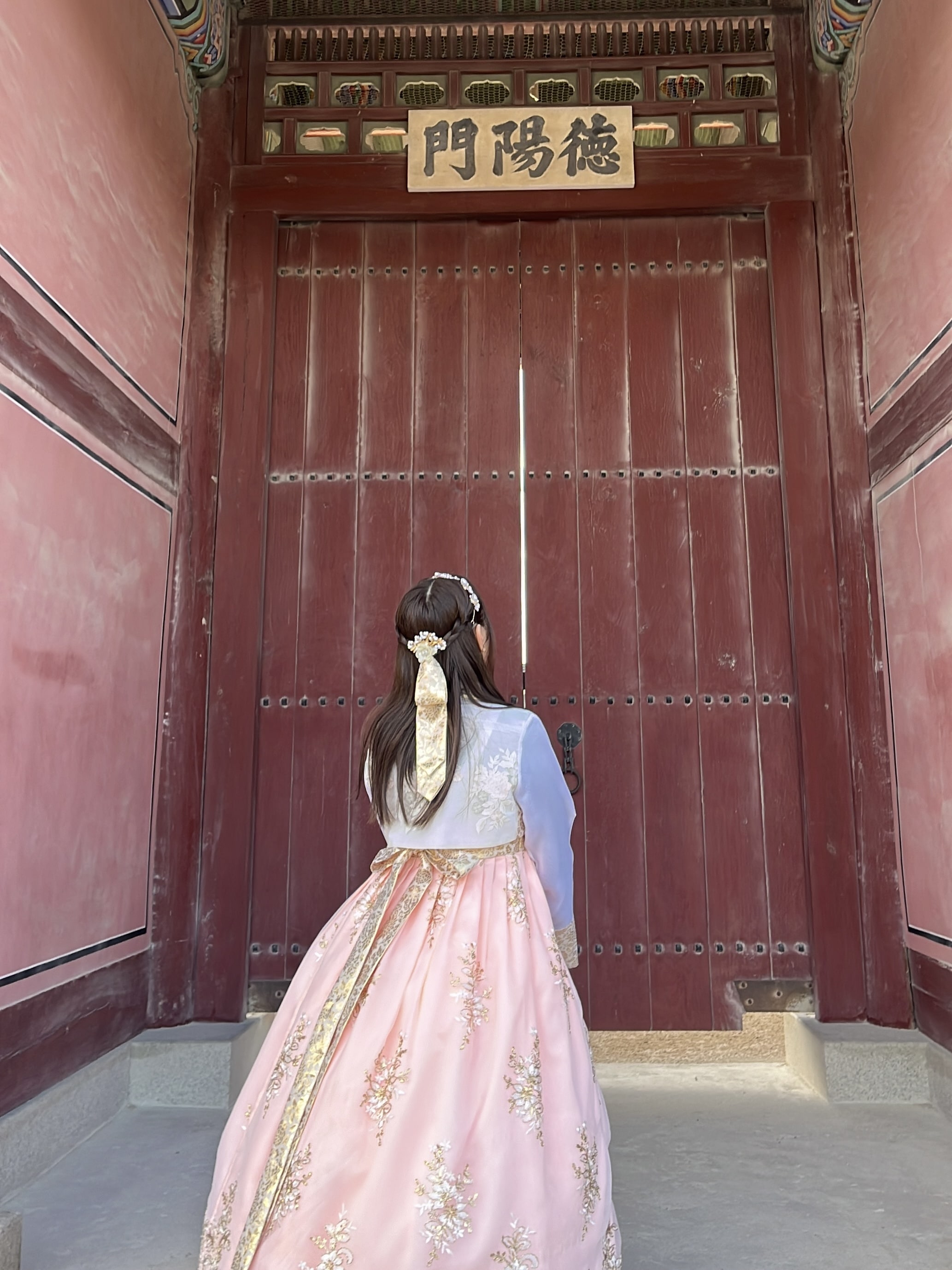 韓国到着後キャリーケースをホテルへ郵送しチマチョゴリ体験へ行きました🙋♀️私はクルミ韓服でチマチョゴリを着ました。日本語を話せる店員さんも居てとても優しく暖かい雰囲気でした!体格や身長に合う物を選んでくださり、髪の毛も結ってもらえます🤧韓服、カバン、ヘアセット込みで2時間の貸出が約28,000ウォンでした。日本円だと約2870円ぐらいです!事前予約をしていたので2時間延長サービス付きでゆっくり楽しめました🙂↕️