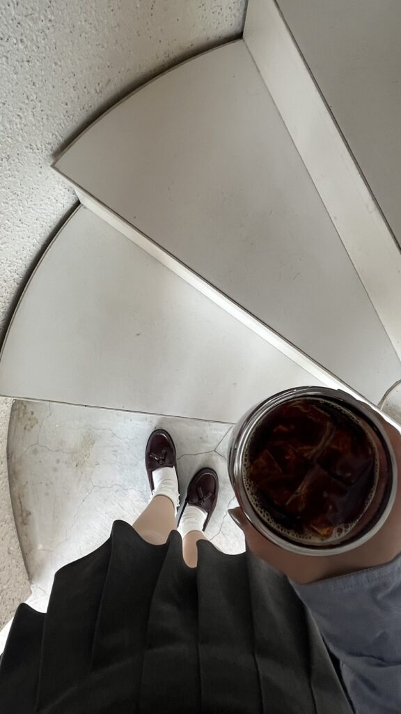 薄いブルーのシャツにプリーツスカート、ローファーを合わせた制服っぽいコーデに仕上がりました🫐このプリーツスカートは、プリーツが途中から広がる物なので骨格ストレートさんにぴったりなんです!✨✨