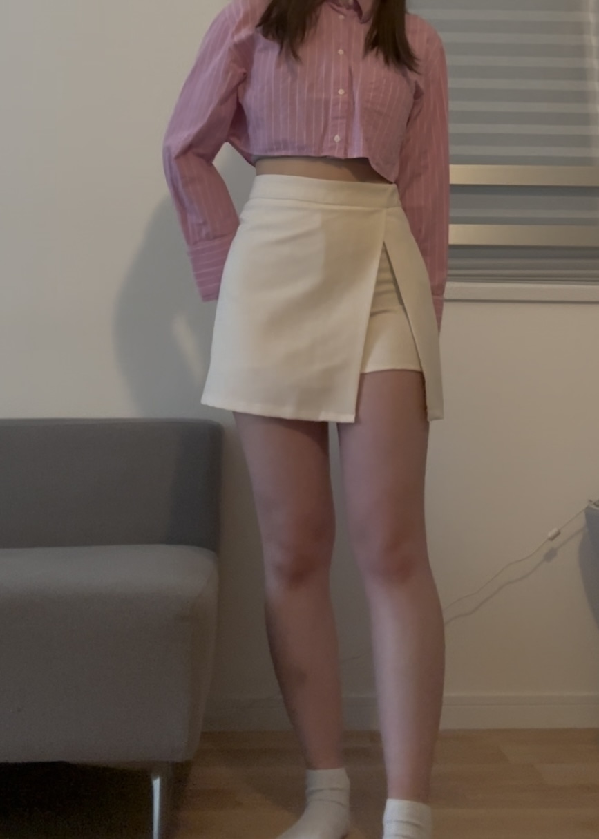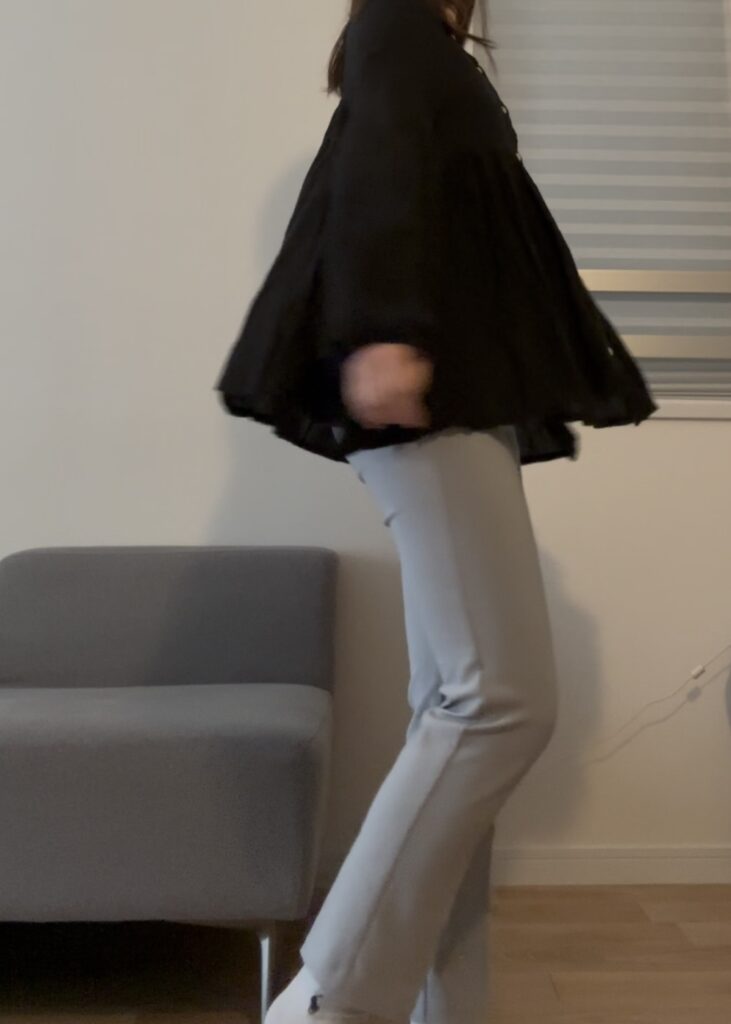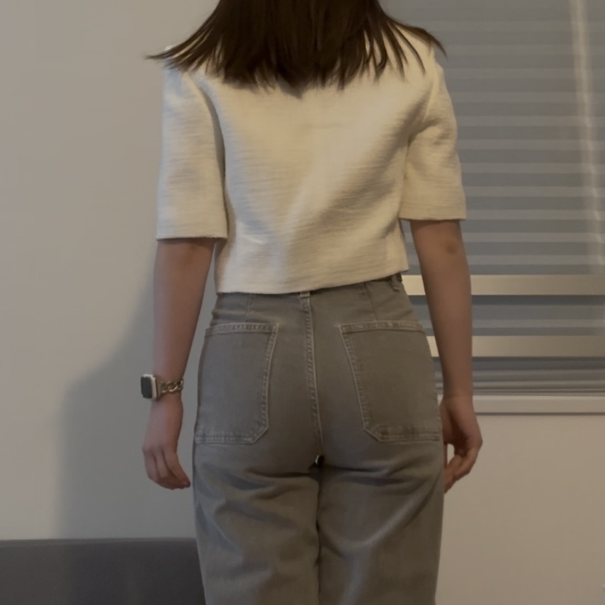 ウエスト位置を高く見せてくれるので、トップスはクロップ丈ばかり着ています、、