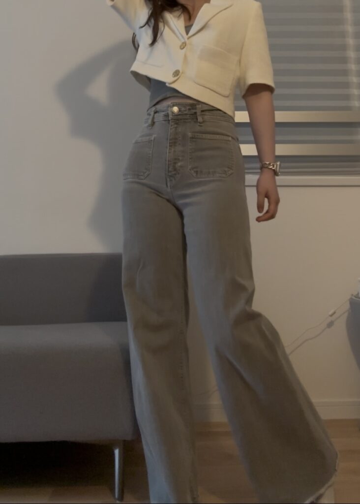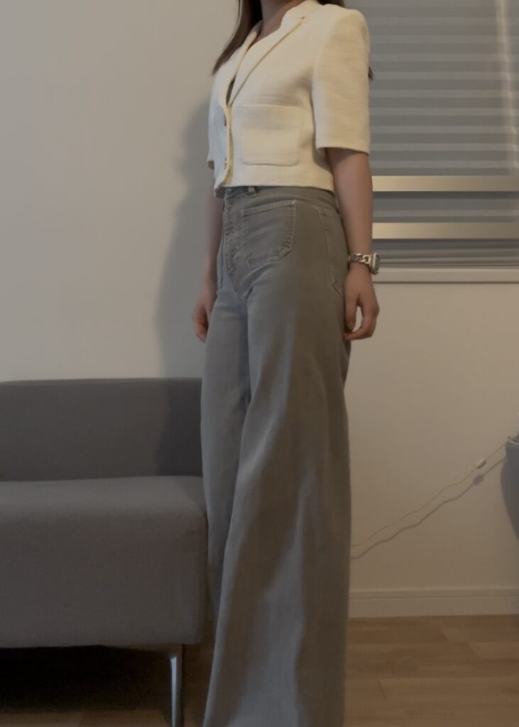 最後は、半袖ジャケットとグレーのワイドデニムのコーデです。
