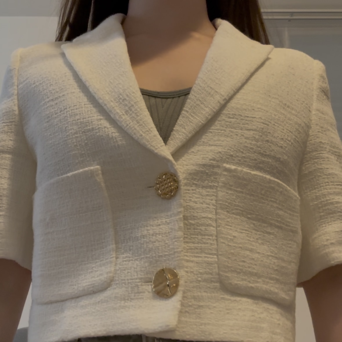 ジャケットもクロップ丈がお気に入りで、ツイード調になっているためお出かけにも◎