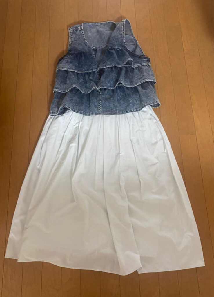 最初にご紹介するのは、デニムのフリルベストを活用したコーデです😎