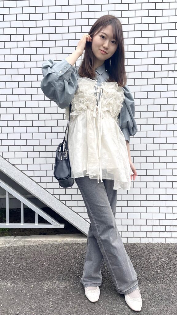 気温の変化が少ない日だったので、アウターいらずでシルエットを意識しました。