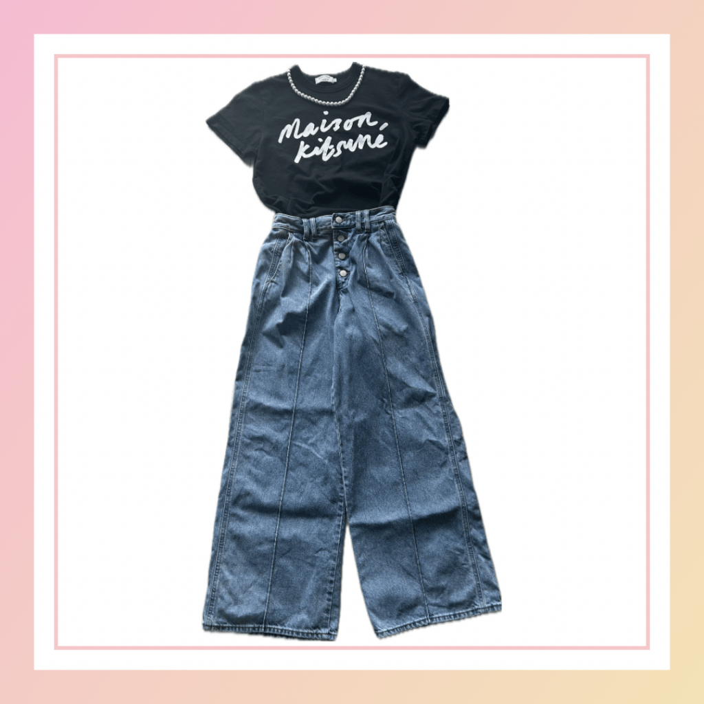 ワイドジーンズ。rokhとGUのコラボ商品です。