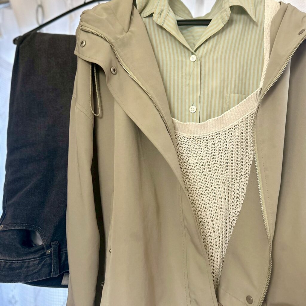 天気があまり良くなくて気持ちもどんよりした日。気分を少しでも上げたいので明るめなカラーに。いつもより冷え込んだからアウター必須。マウンテンパーカー使いやすくてお気に入りアイテム◎
