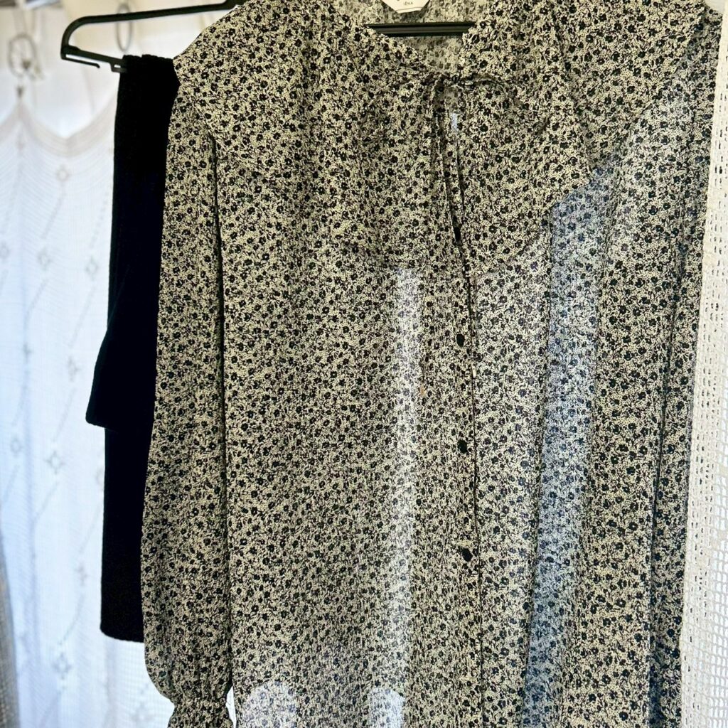 今日はバイトの日。指定の黒のズボンと合わせて着替えやすい服装で。久しぶりのロング頑張った~