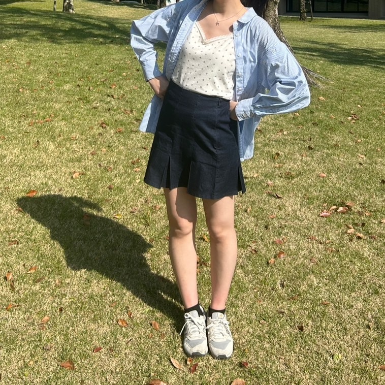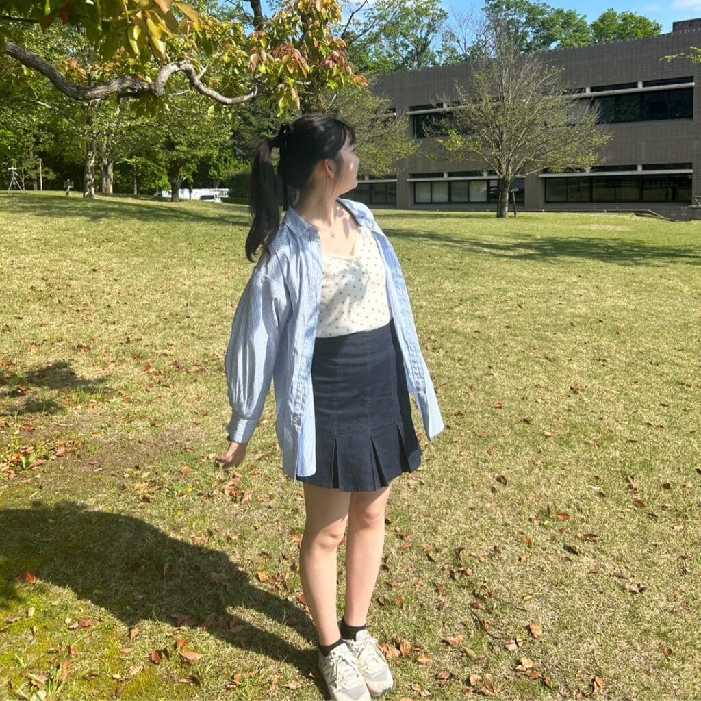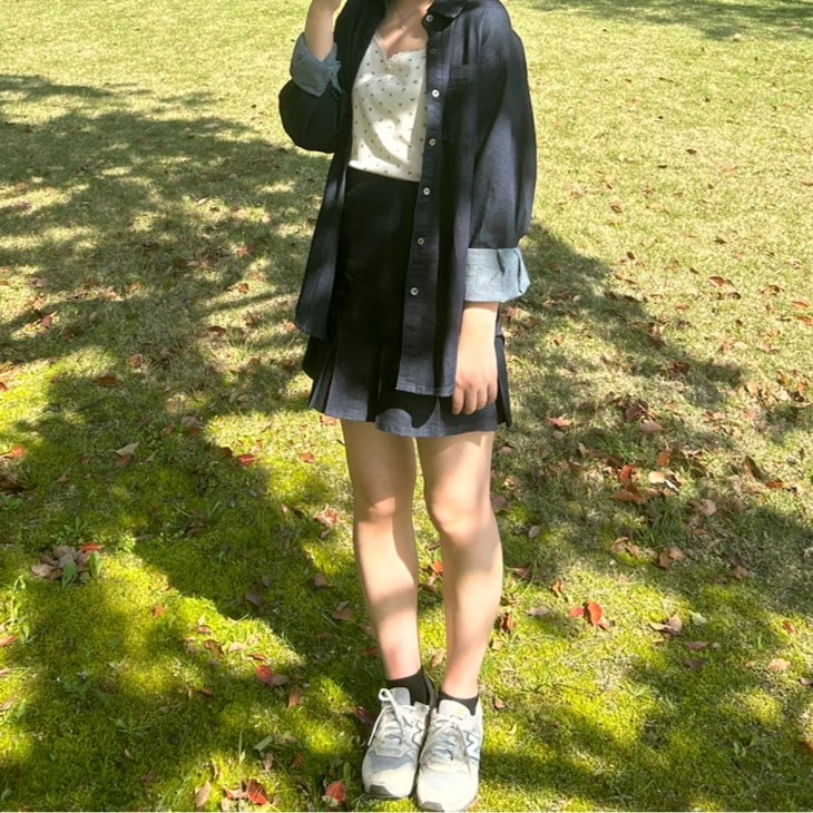 シャツじゃなくて、デニムジャケットでも可愛くまとまると思います!