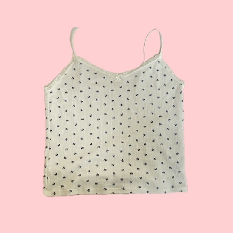 キャミソールをインナーに着ることで、花柄の可愛さもありながら少しの肌見せで大人っぽさもプラスできる!