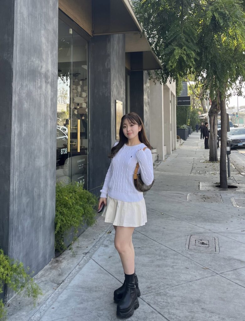 ネックレス /DIOR ヘアリボン /H&M トップス /ヘザー スカート /Brandy Melville ブーツ/EVOL