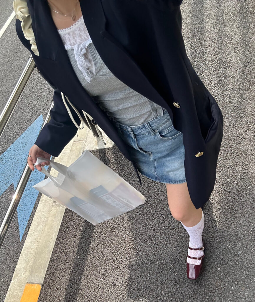 キレイめジャケットにはカジュアル要素をプラスするのがお気に入り💖
