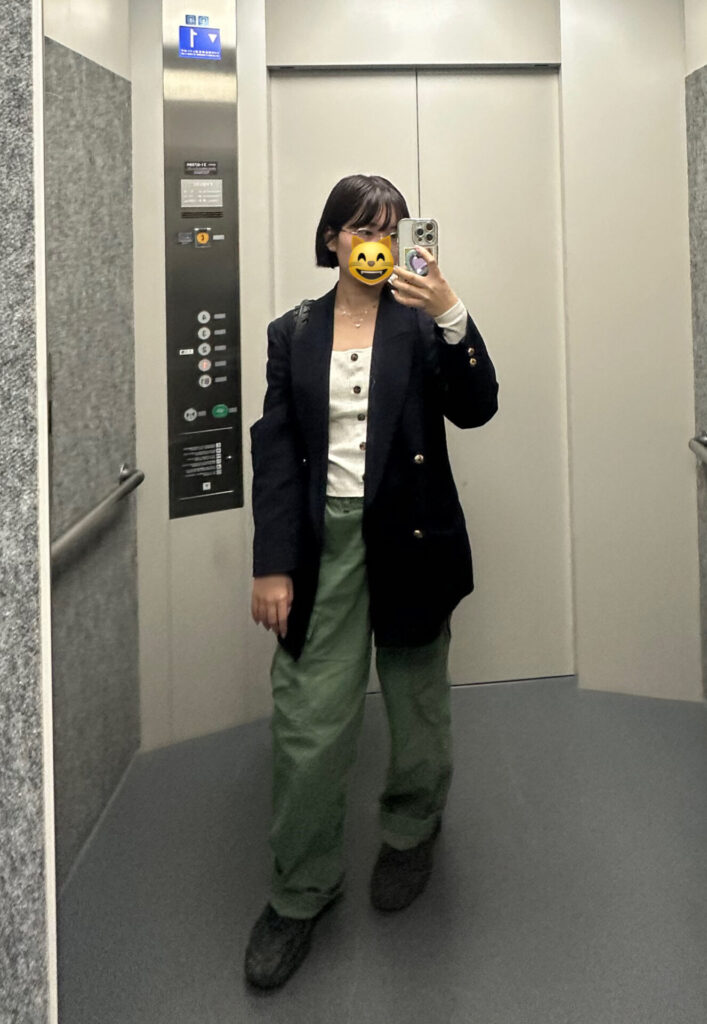 定番のデニムもいいけど、カーゴパンツ×ジャケットも可愛い💖