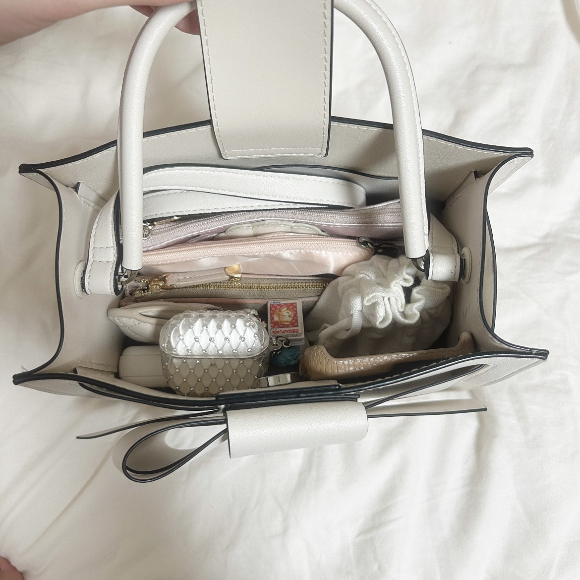 こちらもFRAY I.Dの大人気のバッグですよね♡見た目通り収納力もバッチリで、2Wayでもてるバッグになっています🫶🏻ただ、ショルダー部分が取り外せないのは少し不便ですが、私はいつも中に入れて使用しています😹今回ご紹介するバッグの中で一番収納力があるのがこのバッグかなと思います💭大きめの化粧ポーチを持っていきたいときはこのバッグをつかっています!
