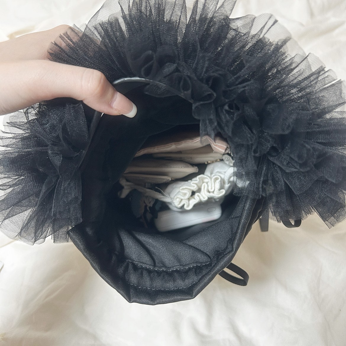 私はクリーム色を購入しましたが、カラー展開も豊富なので幅広い系統の方におすすめです!また、バニティでありがちな明け口を開いた時にひっくり返ってしまう現象も紐が蓋の部分ではなく、本体についているので心配ありません💫そして、意外と容量もあって荷物が多い人も安心です🩷