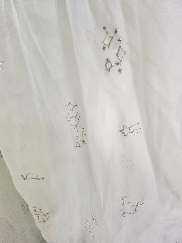 ワンピース全体に星座刺繡が散りばめられていて近くでみても可愛すぎる!