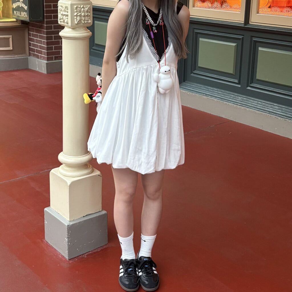 JEANASiSのキャミチュニックは裾がバルーン状になっていて流行りを取り入れつつ、白でシンプルなデザインが使いやすい◎ 生地感も薄めで夏にぴったりです☀