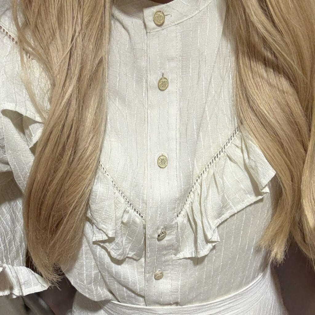 トップスにはtnewtiesのロゴが描かれたボタンがついていて、高級感✨