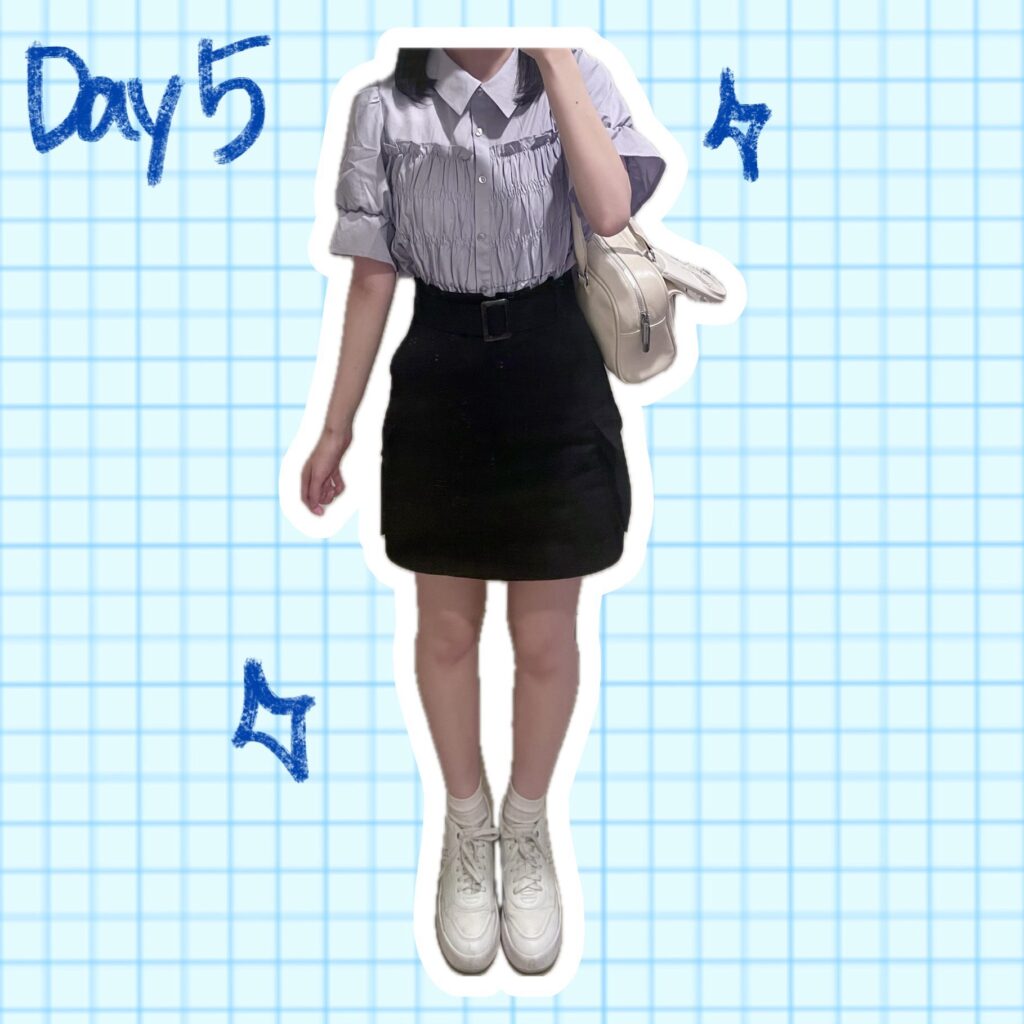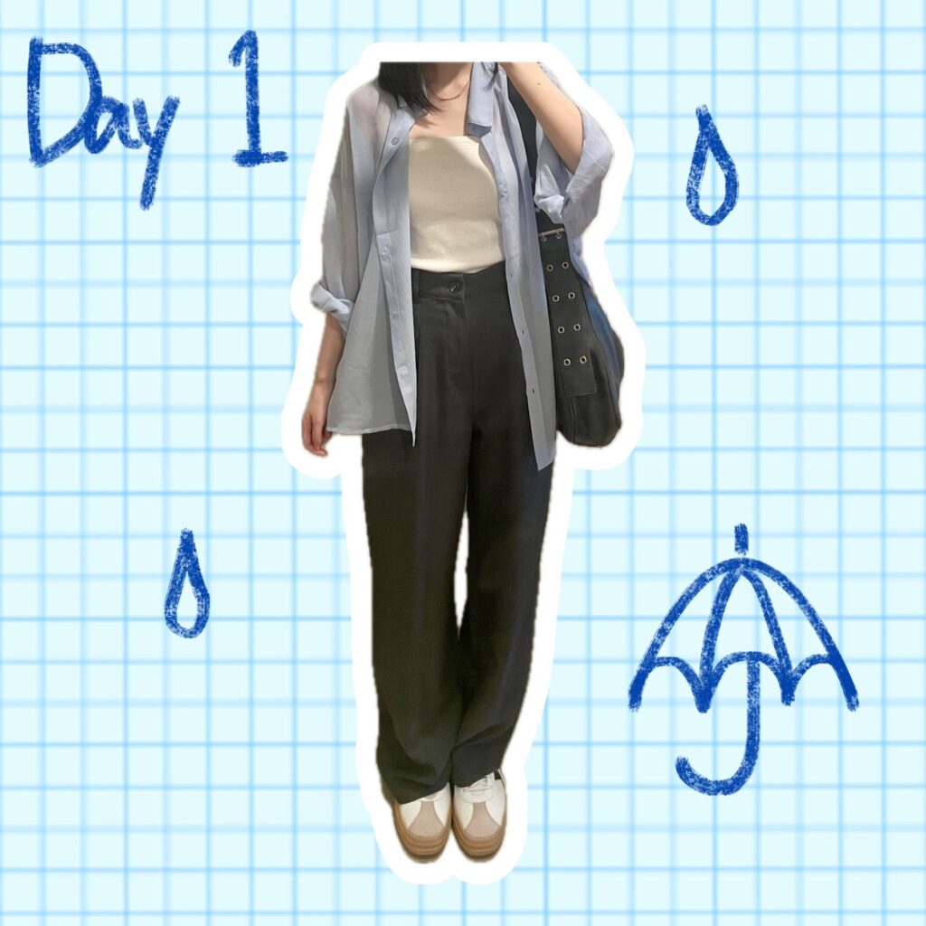 この日は雨で肌寒かったので、軽く羽織れるシアーシャツコーデにしました☔
