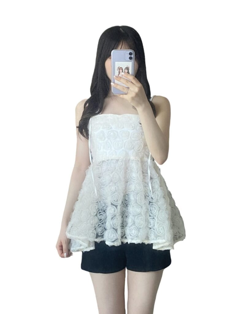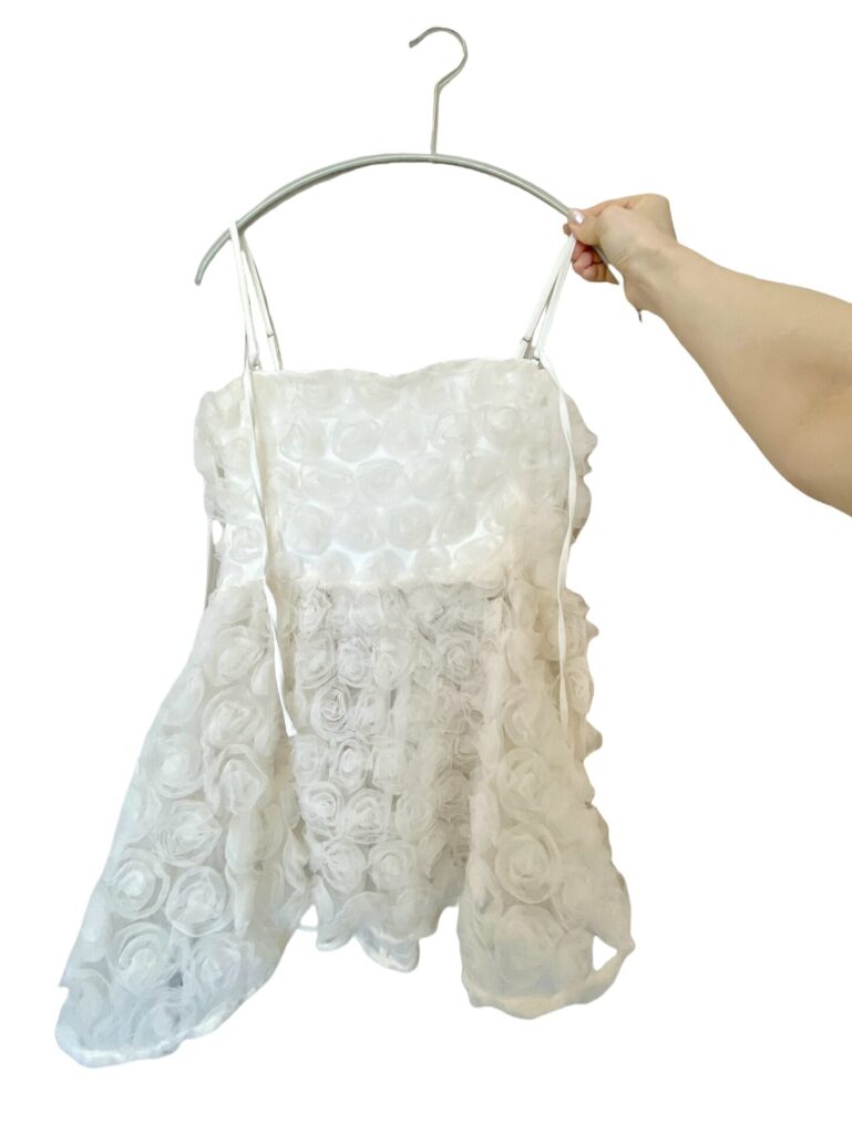 ふわっとしたシルエットなので女の子らしさを演出できます。紫外線や肌見せが気になるときは薄手のカーディガンを羽織っています。