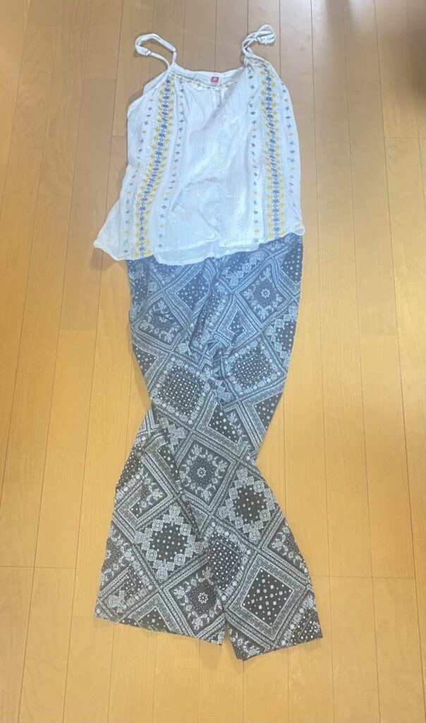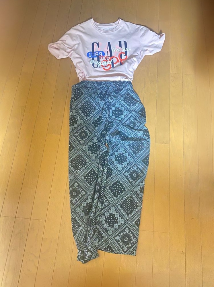 まずご紹介するコーデは、バンダナ柄のボトムスを着用したコーデになります!