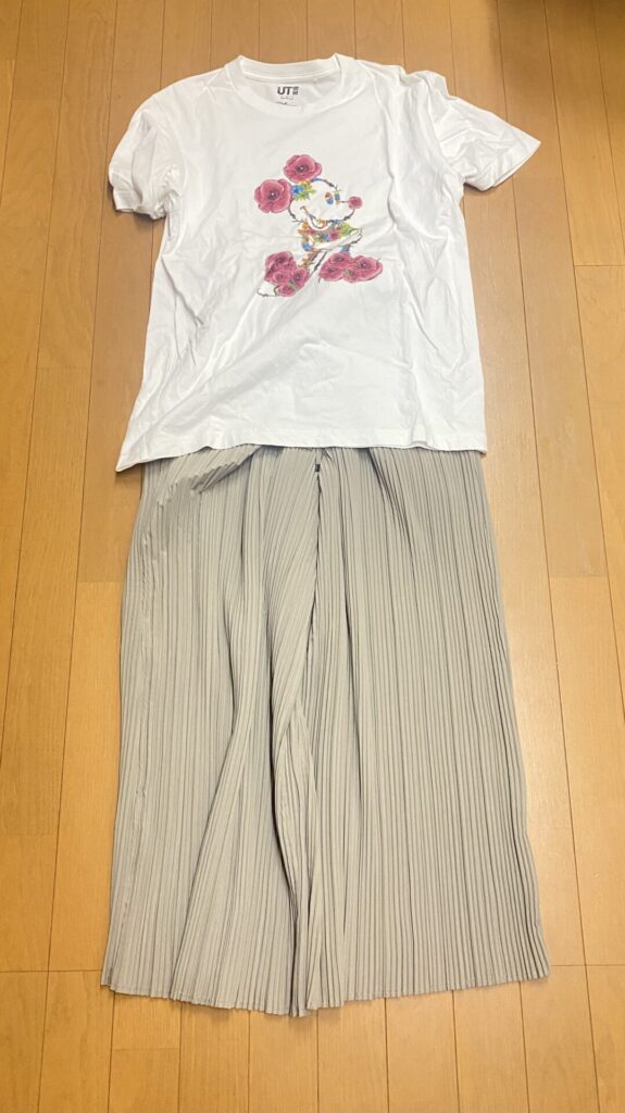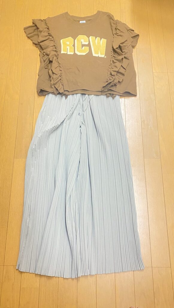次にご紹介するのは、Workman Colorsで購入した「レディース撥水プリーツセミワイドパンツ」のコーデになります!