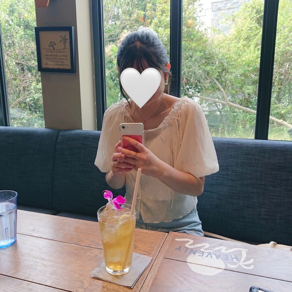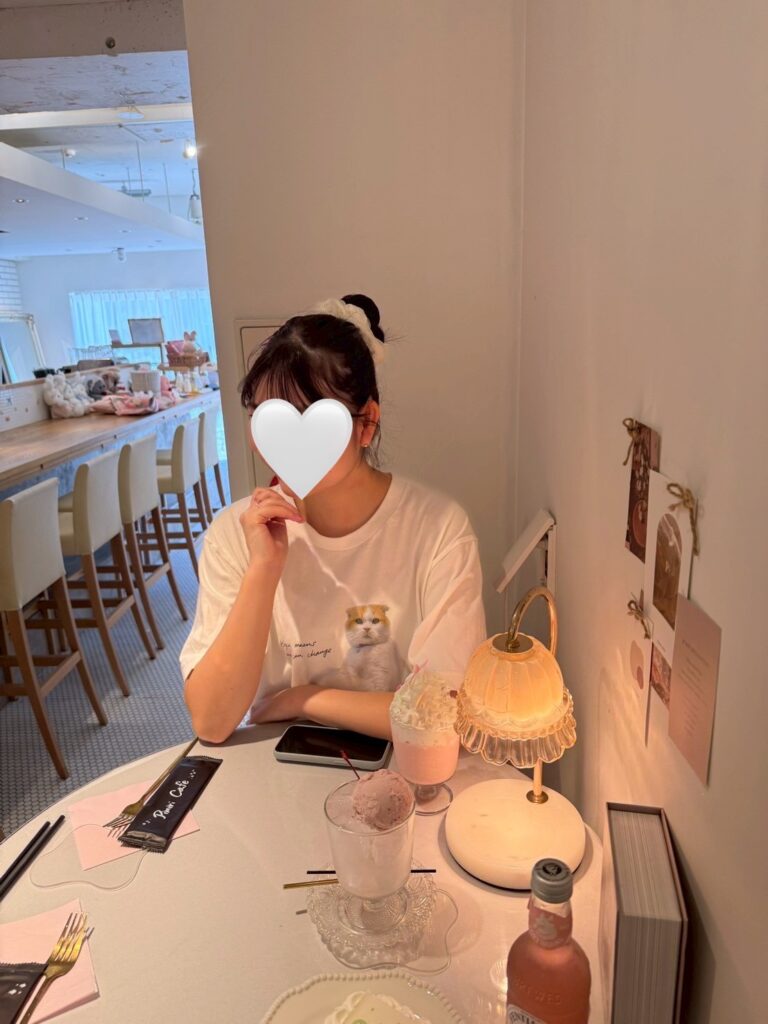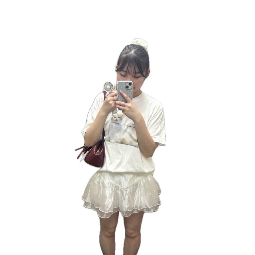 可愛い雰囲気の韓国カフェに行く日は、オーガンジー素材のミニスカートで可愛らしい雰囲気のコーデに。