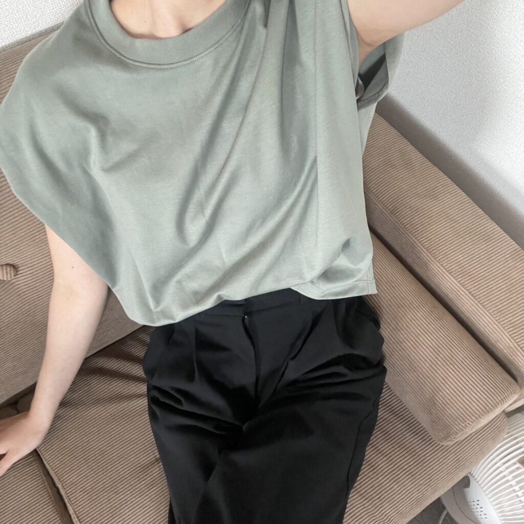 ドライウエストタックTは二の腕を綺麗に隠してくれるデザインかつ、上半身をスッキリ見せてくれるので、とにかくスタイルがよく見えます!