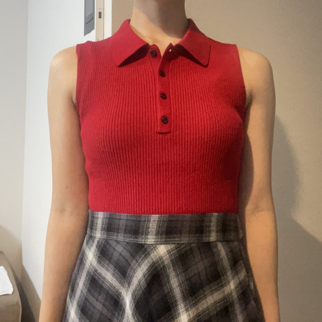 まずは2ピースリブニットポロシャツ。こちらは3通りの着方を楽しめます♪