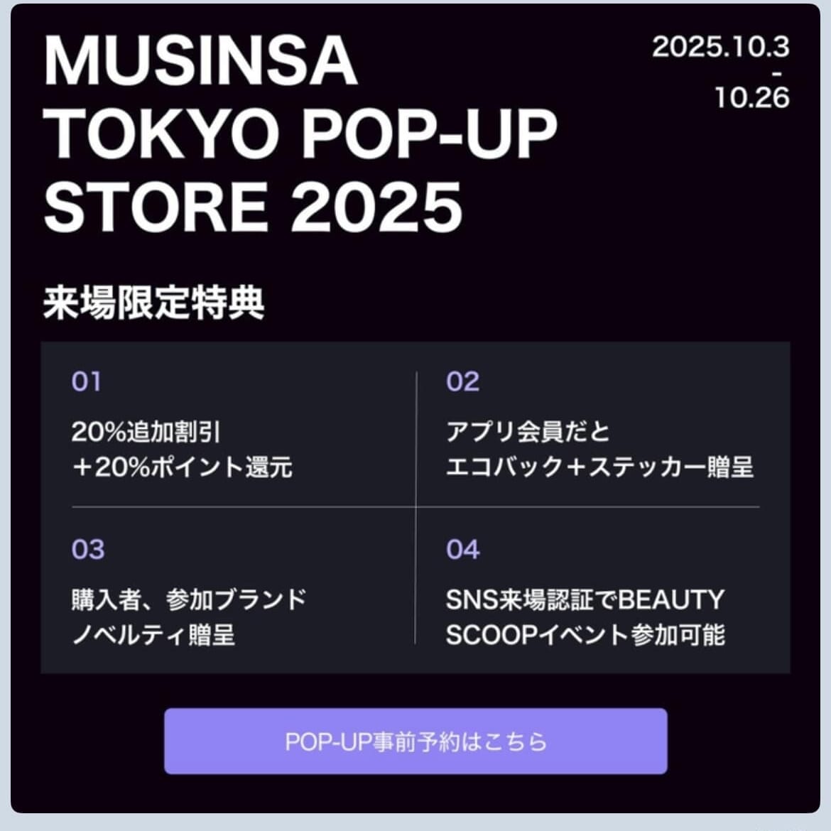 [渋谷]MUSINSA TOKYO POP-UP STORE 10/3~10/26まで開催中