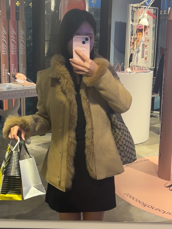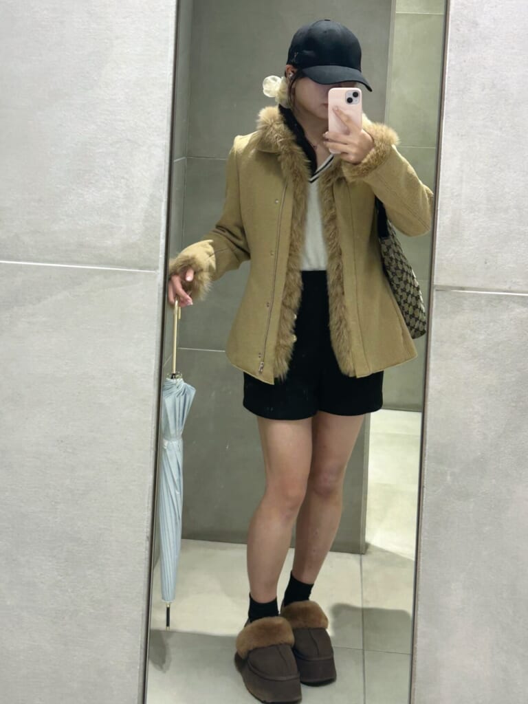 今年もやってきたアグのスリッポンの季節✨色味違いのブラウンのふわふわが、ジャケットのファーとセットで一言でいうと、クマ。