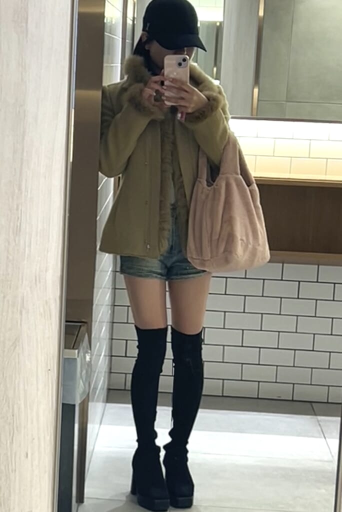 イメージはXでよく見ている半炒飯ちゃん。けど脚の細さがかけ離れすぎて絶望して、Meituで必死に加工したらいい感じの脚になりすぎました、すみません💦