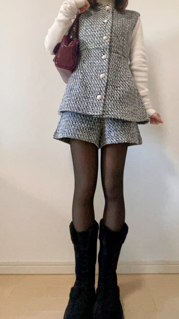 フリージアツイードベスト×ショートパンツセットアップ [品番pm479] ¥3,799(税込)