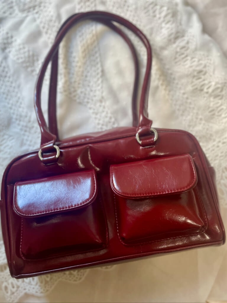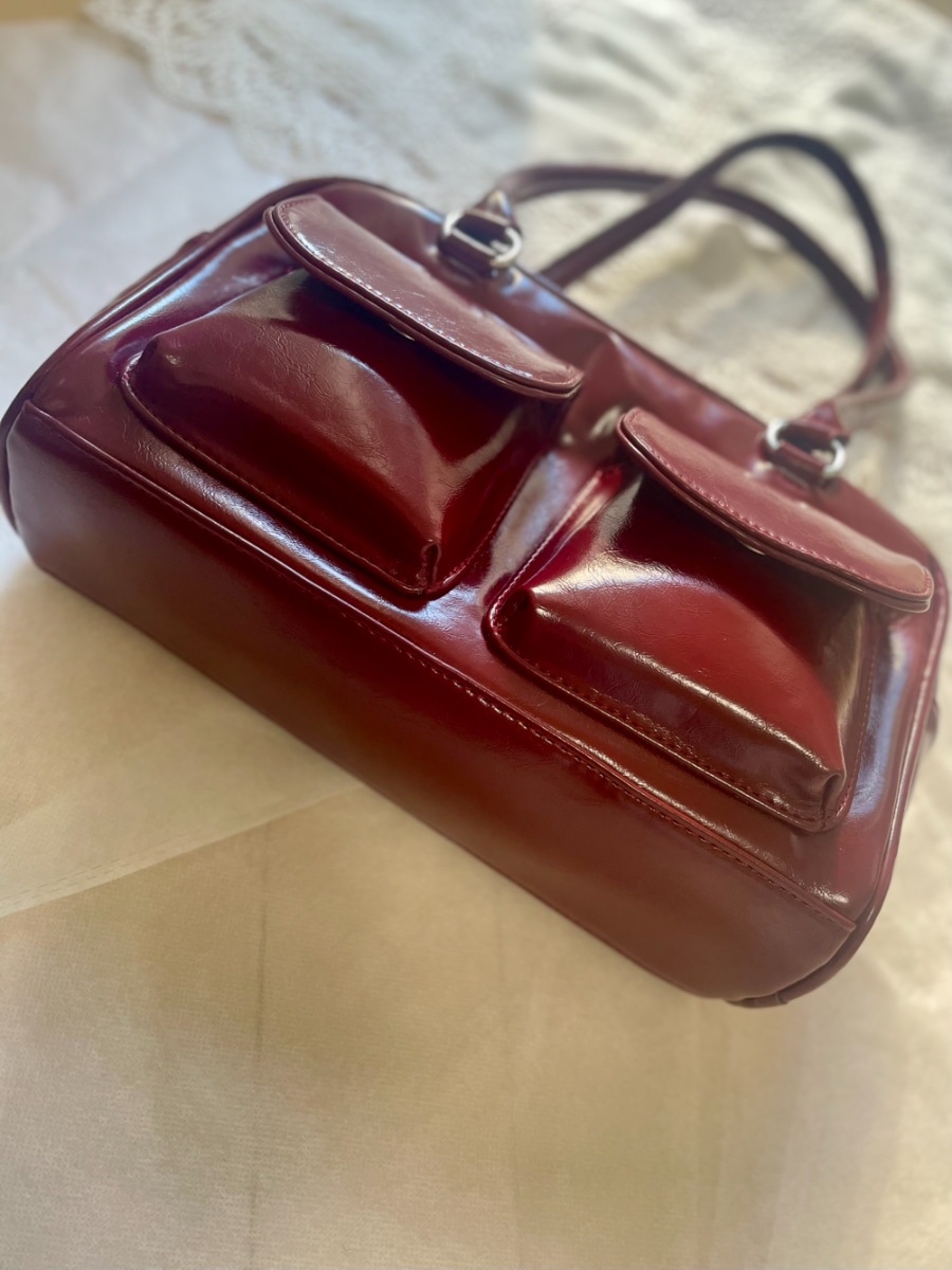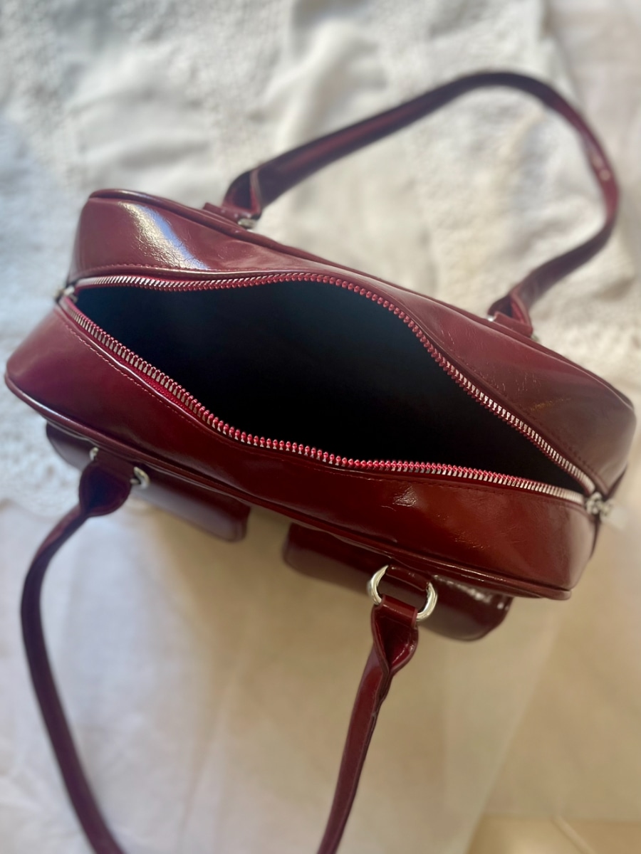ツヤのあるフェイクレザー素材が、高見えを叶えてくれるボストンバッグ。