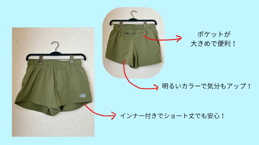 注目アイテムの2つ目は、ショートパンツです! オーソドックスな黒のショートパンツは持っている方も多いと思うのですが…、マラソンやトレイルランニングに参加するオシャレな方は、明るい色のショートパンツの着用率が高め!福袋を機会に新しいカラーをゲットできて嬉しいです♡ そして、後ろのポケットが、他のパンツに比べて大きめなのも特徴です!