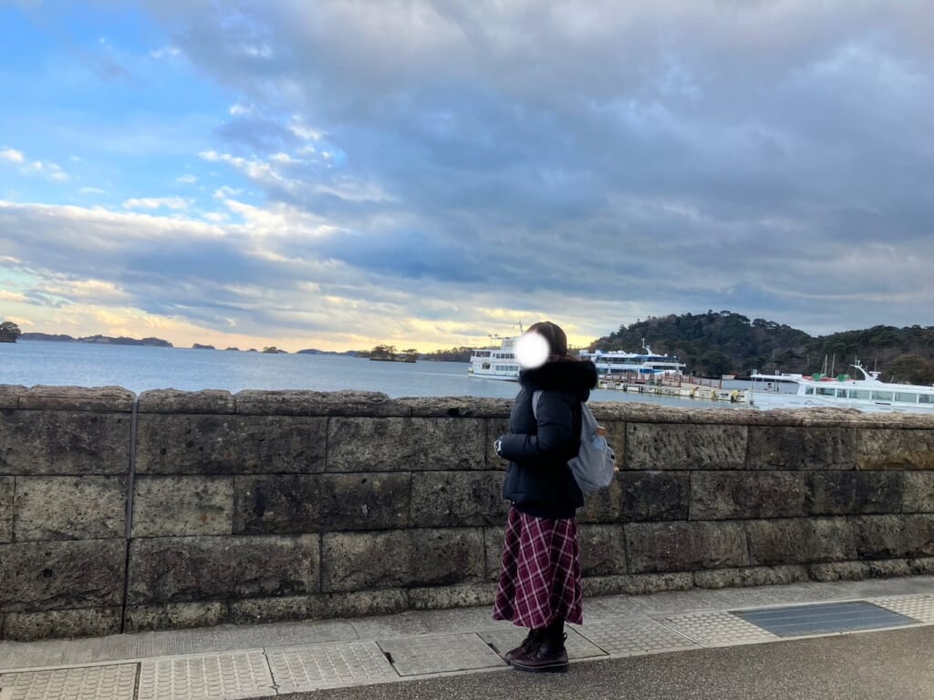 年末に松島に行った時もこのダウンを着ていました。海の近くで風がとても強かったですが、すごく快適に過ごせました!!