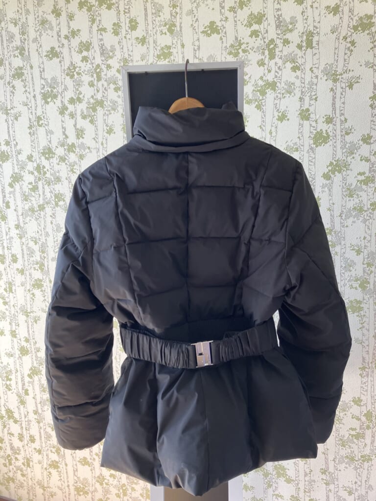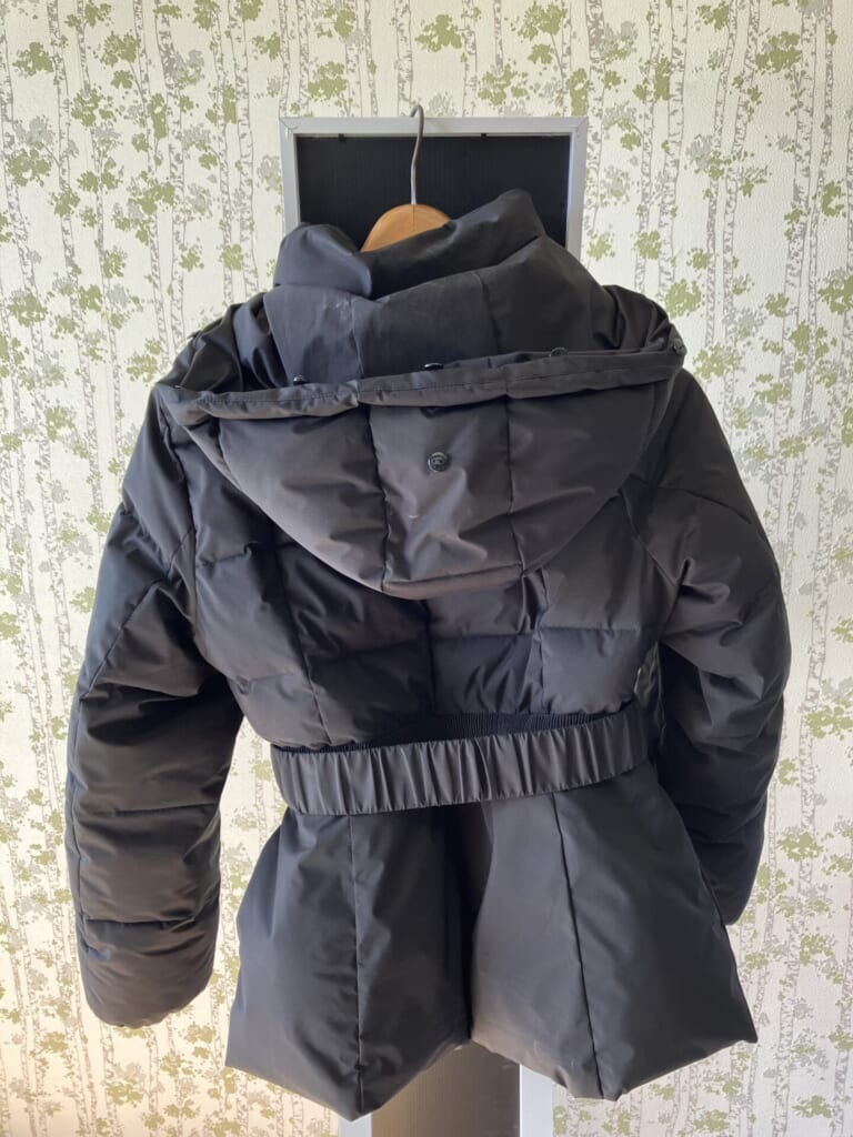 このダウンはベルトがついているのでウエストマークが可能なんです!前を開けて着たいときには後ろで留めてしまえば邪魔にもなりません。
