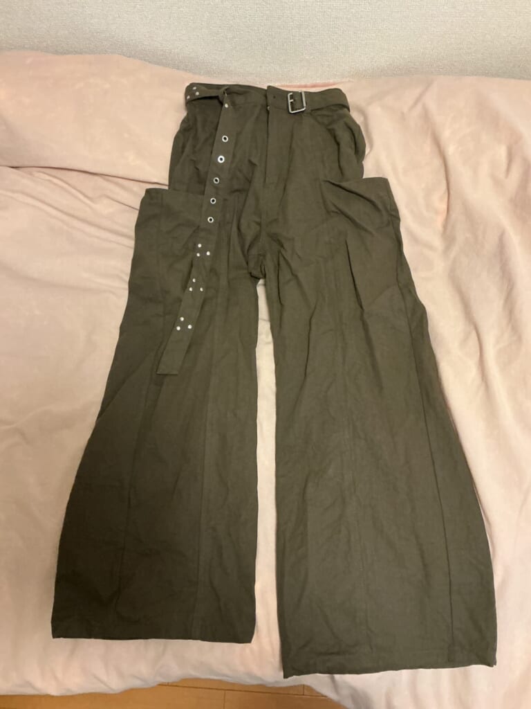 2サイズ展開で私は小さい方を履いてみましたが、157cmでギリギリ裾が地面につくかどうかぐらいだったのでサイズにはご注意を。厚底を履けば全く問題なしで、個人的にベルトでウエストの調整がしやすいところが推しポイント💖