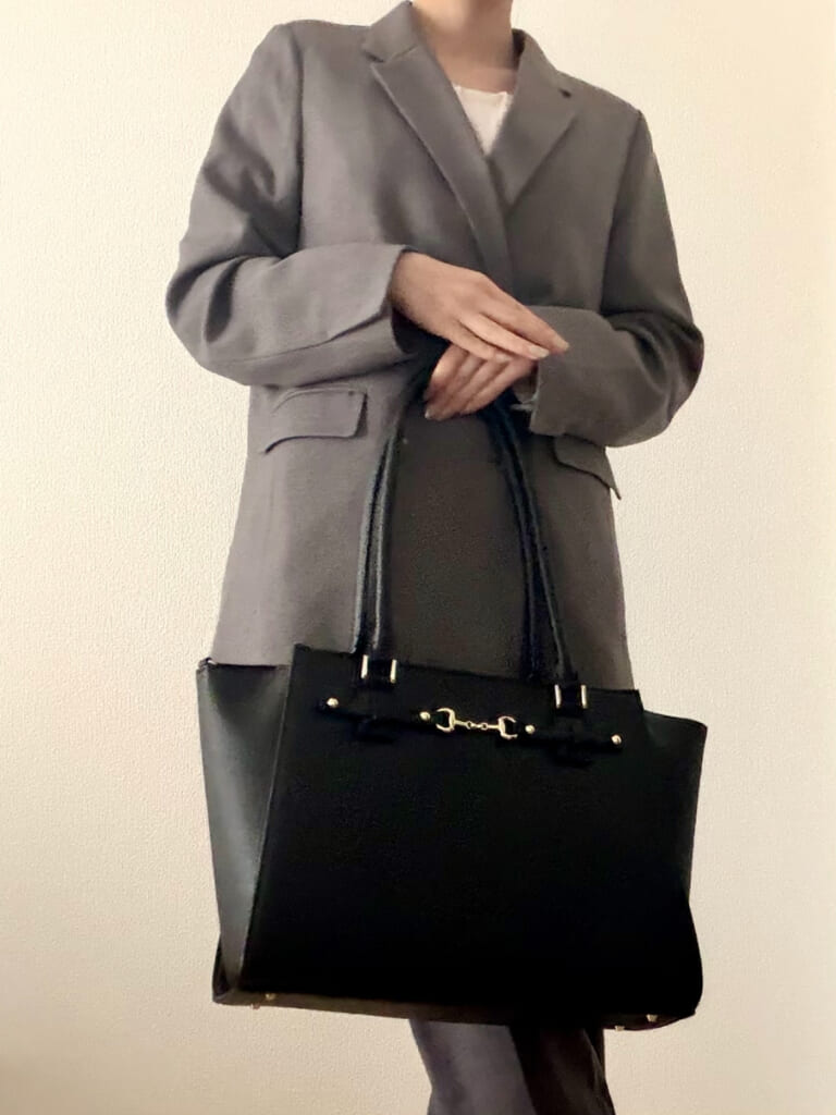 いわゆる“オフィスカジュアル”が求められる場面で、堅すぎず洗練された印象の入学式バッグは万能でした。