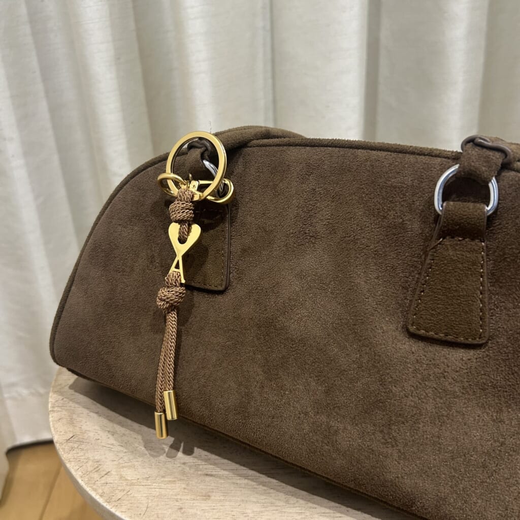 また、サイズはトートバッグのような大容量のバッグよりもハンドバッグくらいの小さいバッグ方が、チャームがより目立つのでより可愛くキマります。