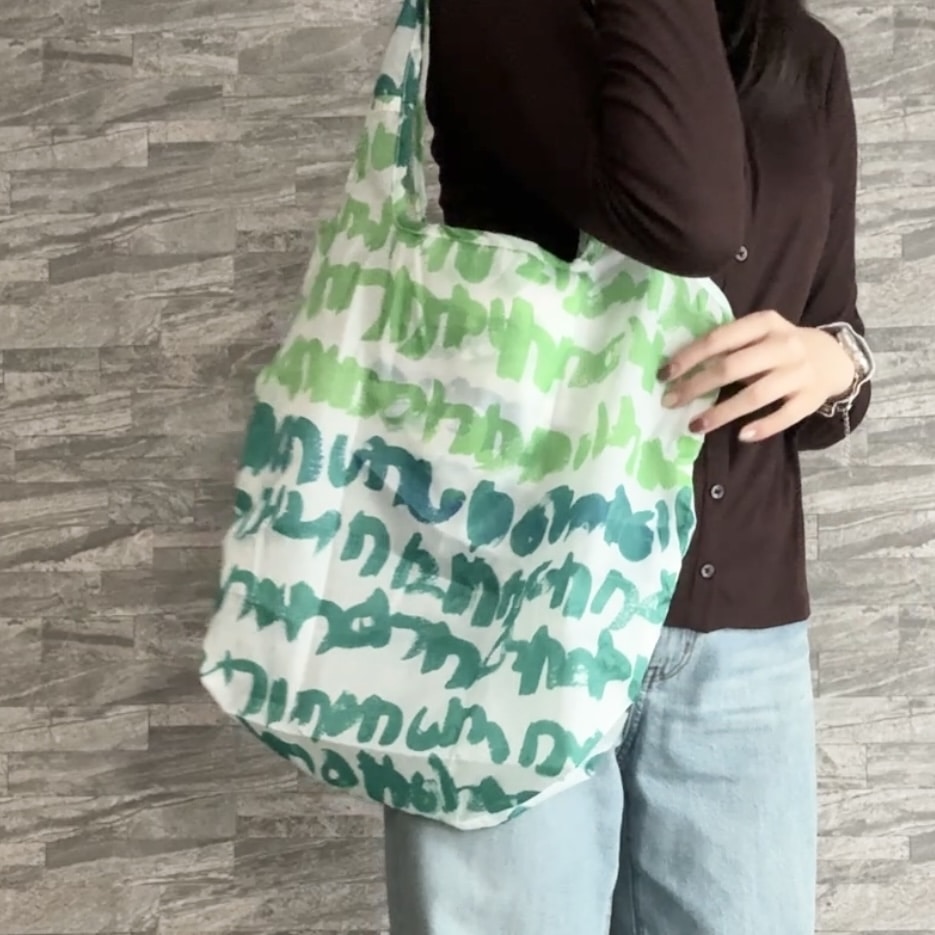 トートバッグは大きいサイズ感で小さく折りたたむこともできるので、カバンの中に入れて持ち歩くこともでき、とても便利です。