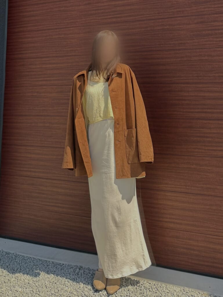 また、夜には肌寒くなるので、キャラメル色のジャケットを肩掛け☆