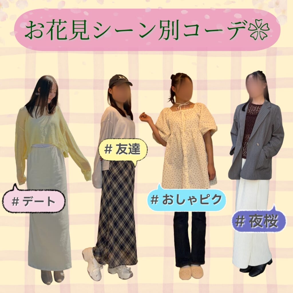 今回は、春のお花見に着ていきたいコーデを4つのシーンに分けて組んでみましたが、いかがでしたか?
