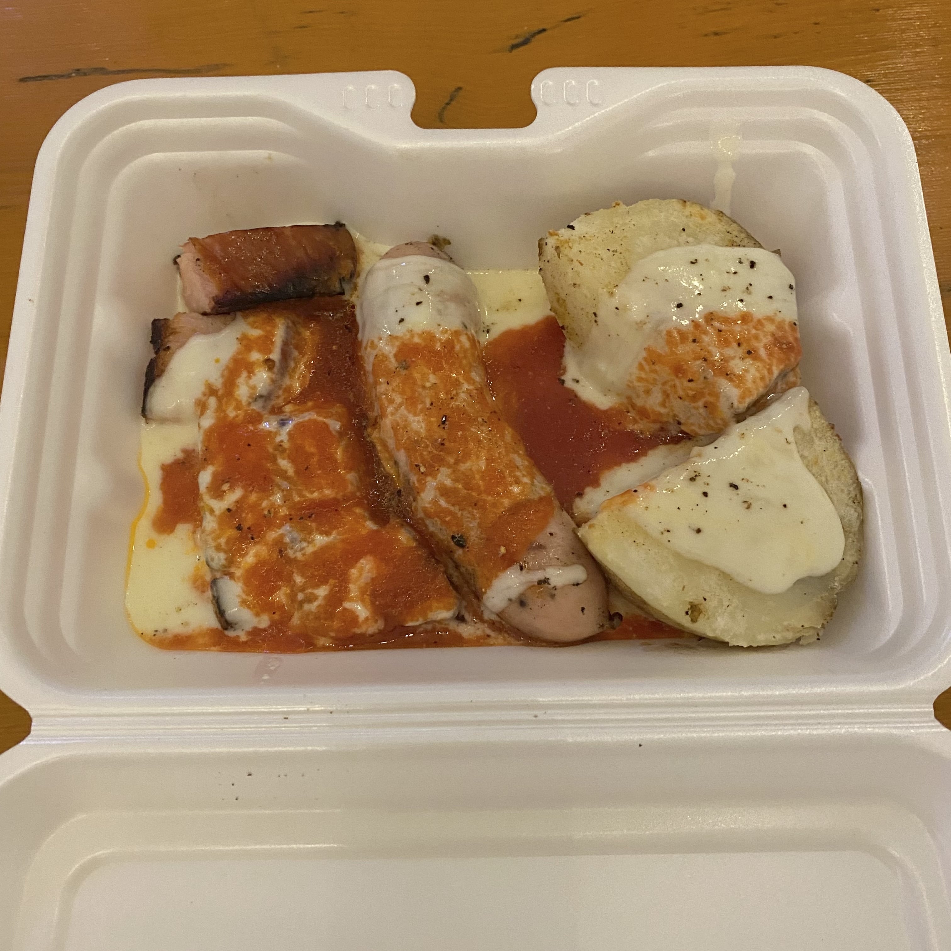 ドイツから輸入されたヒュッテという小屋の中で、様々な雑貨や食べ物が売られていました。私はホットワインとチーズフォンデュ(じゃがいも、ベーコン、ソーセージの3種セット)、炙って食べるチーズケーキ、光るクリスマスコットンキャンディーをいただきました!