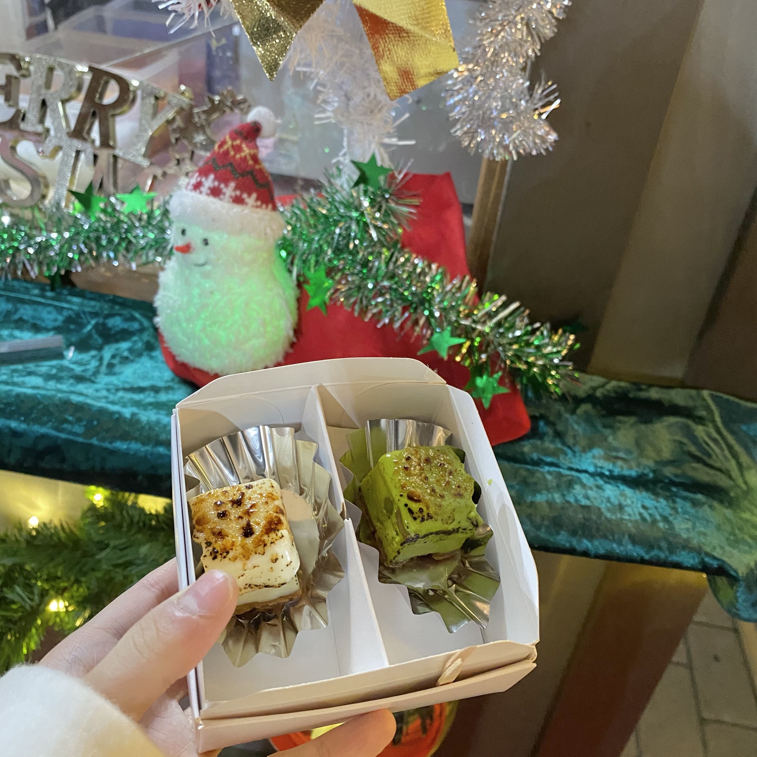 仙台の老舗和菓子店「賣茶翁」は、仙台では有名な人気和菓子店です。クリスマスツリーをかたどった和菓子「聖樹」と「聖夜」は、見た目もほっこりする可愛らしさで、まろやかな程よい甘さでした。もう一つの生菓子「寒椿」は、もっちりとした食感と優しい甘さが溶け合い、白から薄桃色のグラデーションが美しい和菓子でした✿