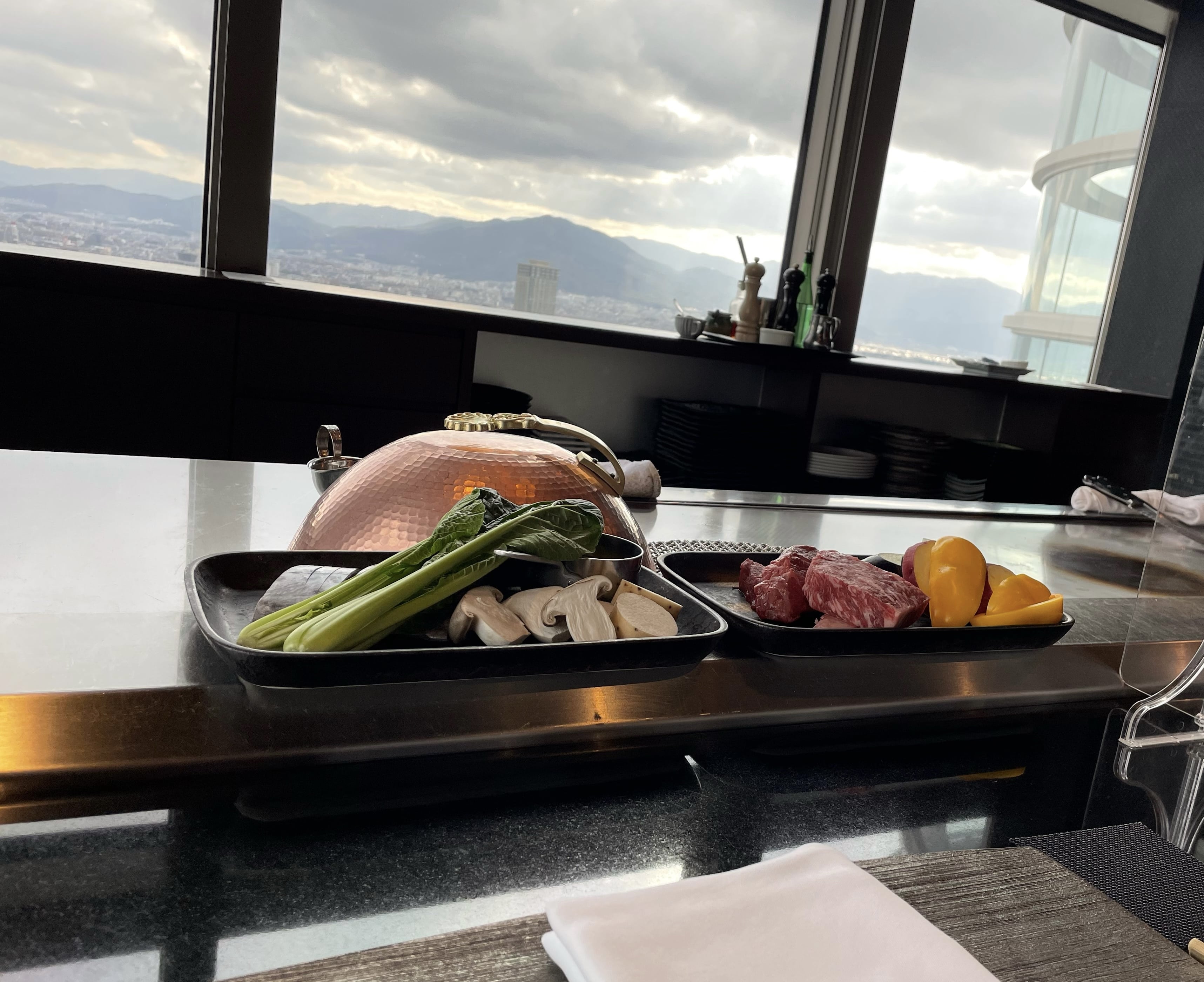このお店はヒルトン福岡シーホークの35階、地上123メートルのところにあります!福岡のヒルトンは砂浜沿いにあるので、その高さから外を見ると百道浜の青い海が広がっています。手前には福岡ドームがあったり、海の向こうには島があったりと見応え抜群!この景色だけでももう楽しいです♡
