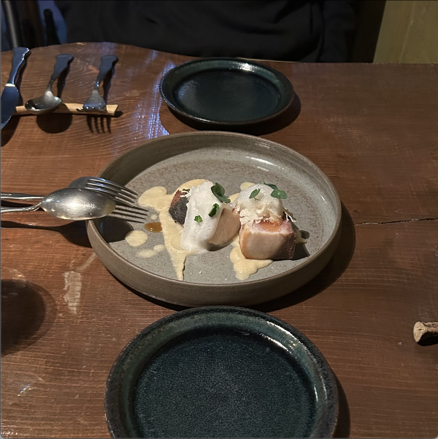 熟成鰤のコンフィ、カリフラワーのデグリネゾン(¥2500)