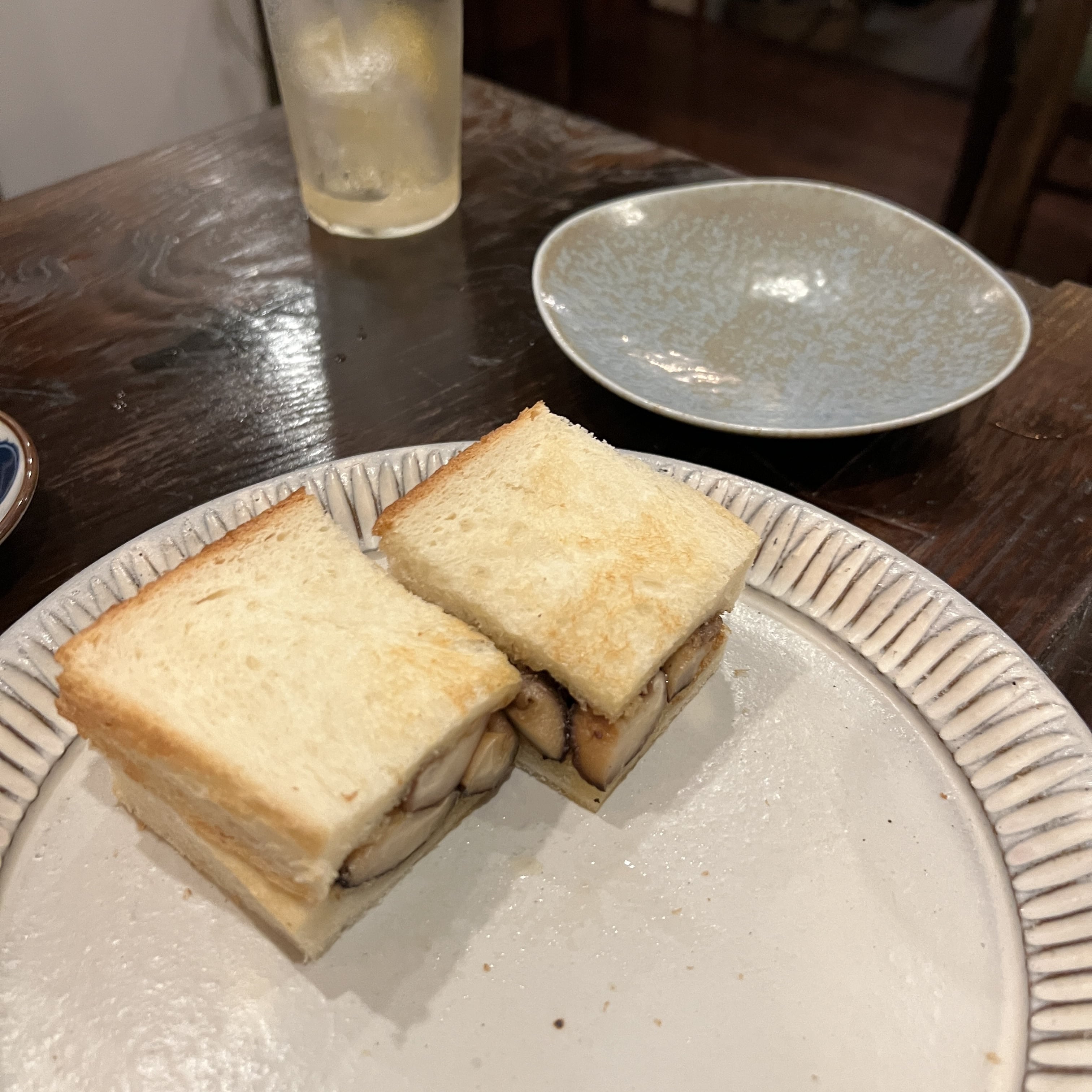 原木椎茸だけサンド:こちらのサンド、椎茸がぎっしり詰まった至福の椎茸「だけ」サンド🍄→