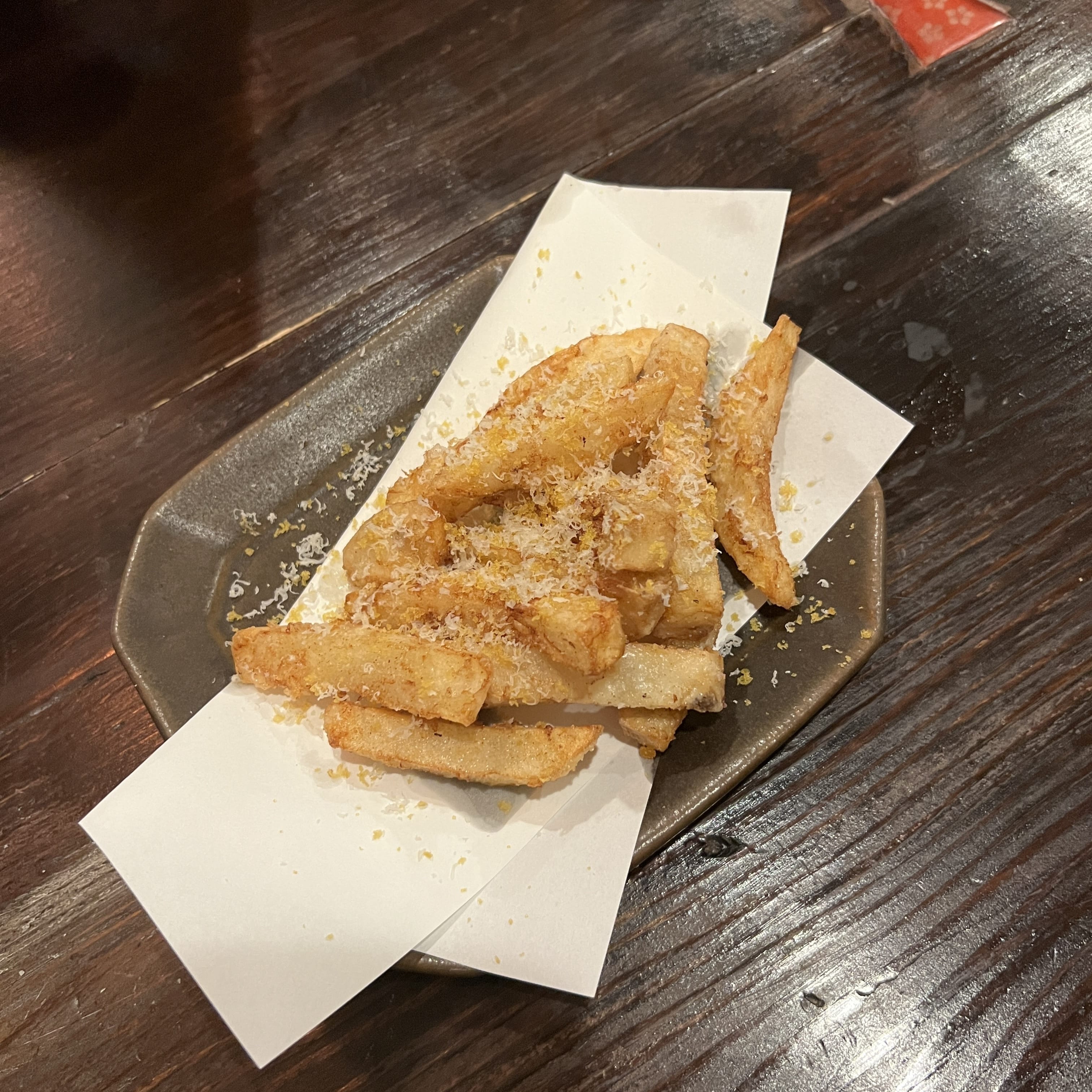 ボッタルガとパルメジャーノのポテトフライ✨:カラスミの旨味とチーズの濃厚さが最高でした◎