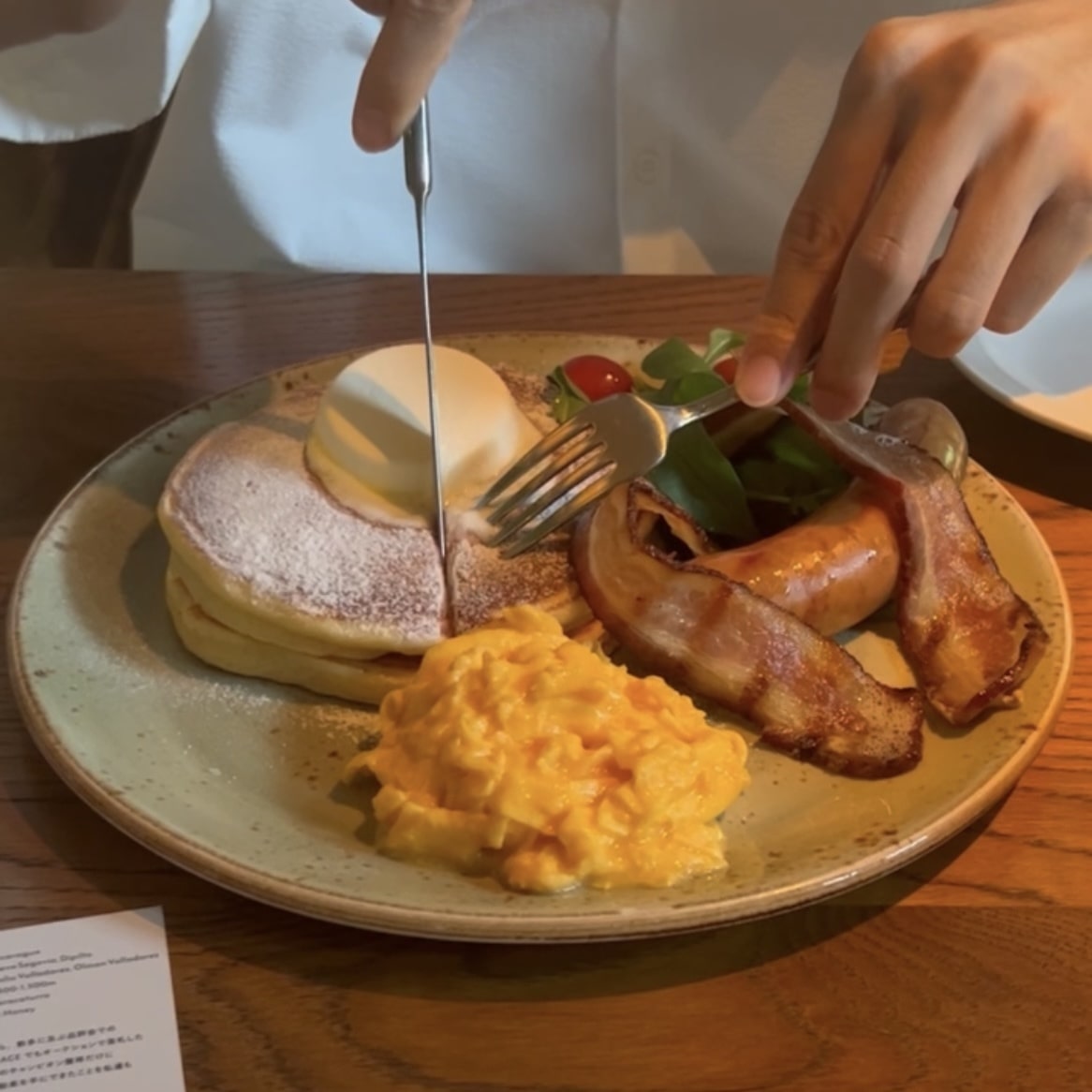 パンケーキはふわっふわでバターたっぷりで王道のおいしさでした ♡