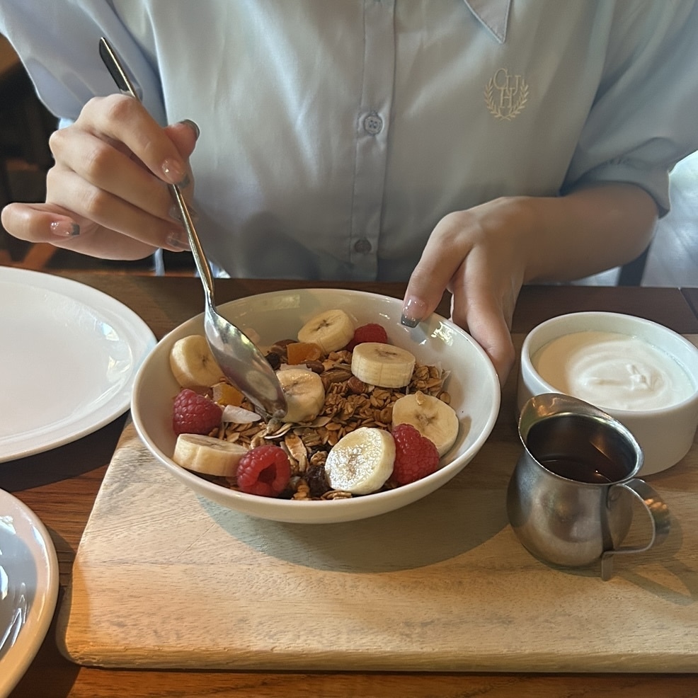 オシャレなモーニングの代表、グラノーラも注文 ♡